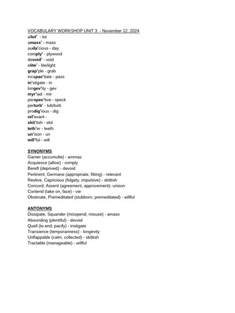 Download Vocab Unit 3 Answers Doc
