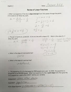 Read algebra 1 linear functions review answer key Reader